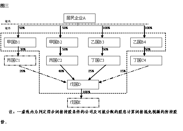 注:…虚线内为判定符合间接持股条件的公司及可就分配的股息计算间接抵免税额的所持股份。